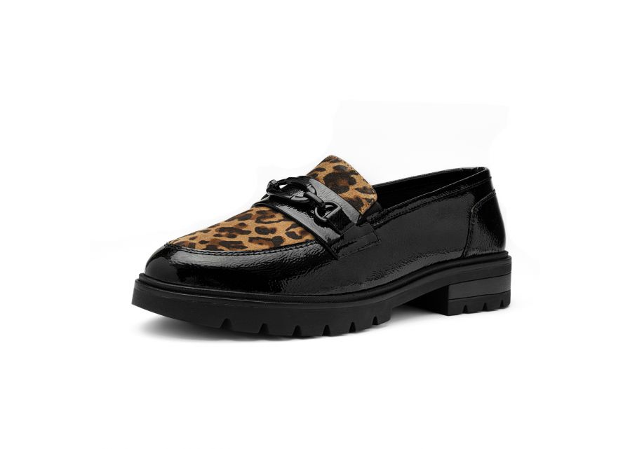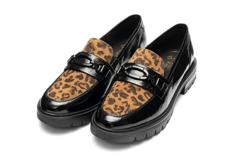 Γυναικείο Δερμάτινο Μοκασίνι Μαύρο Λεοπάρ 11219-11 Ara